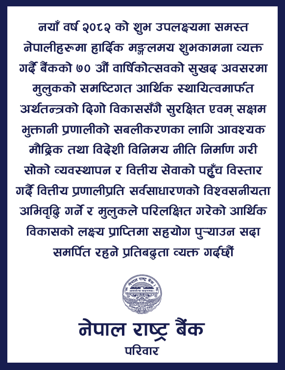 काठमाडौं । नेपाल राष्ट्र बैंकले बैंकहरूको खराब कर्जा वर्गीकरणसम्बन्धी नियममा परिमार्जन गरेको छ। सोमबार बैंक तथा वित्तीय संस्थाहरूको