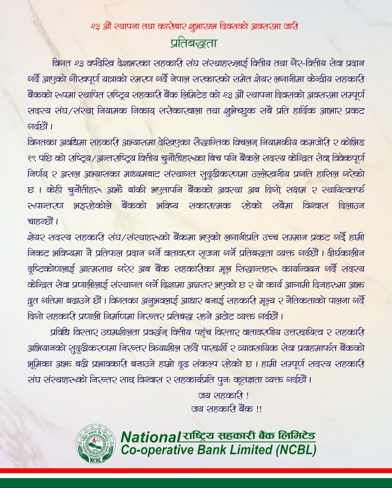 काठमाडौं । आज अन्तरराष्ट्रिय बैंक दिवस मनाइँदैछ । बिहीबार बैंक दिवससँगै एकपक्षीय दबाबविरुद्धको अन्तरराष्ट्रिय दिवस पनि आजै परेको छ । यी दुवै दिवस संयुक्त राष्ट्रसङ्घको