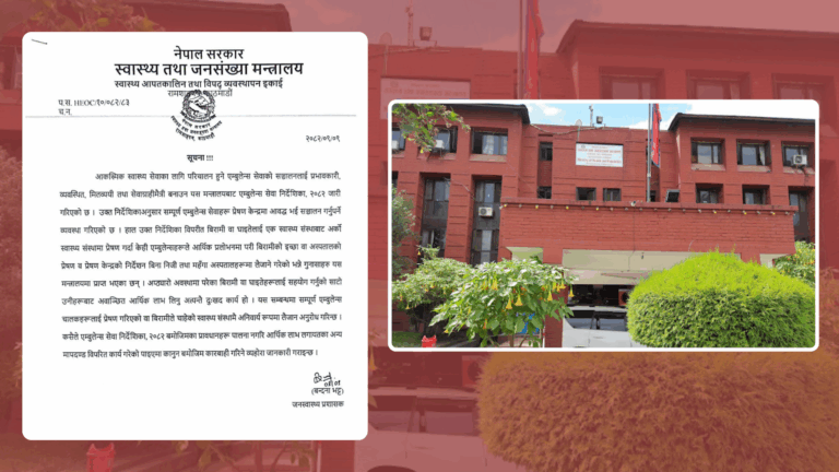 काठमाडौं । स्वास्थ्य तथा जनसंख्या मन्त्रालयले एम्बुलेन्स चालकहरूले आर्थिक प्रलोभनमा परी बिरामीलाई महंगा अस्पतालमा लैजाने गरेको गुनासो आएको भन्दै यस्तो