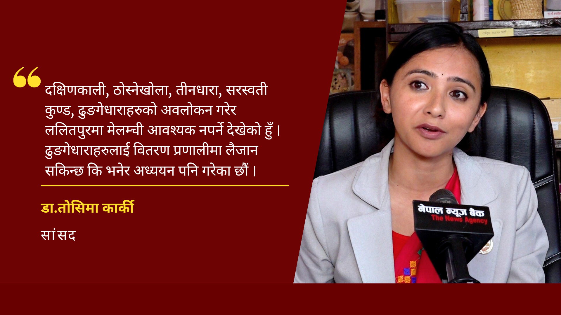 ‘वास्तबमा यहाँका पानीका स्रोतहरुलाई सही तरिकाले उपभोग गर्ने हो भने मेलम्ची ललिपुरमा आवश्यक पर्दैन् । खानेपानी मन्त्रालयमा दुईतीन जना मन्त्रीहरु चेन्ज हुनुभयो । उहाँहरुसँग संवाद गरेको छु, पत्र लेखेको छु र वैकल्पिक स्रोतहरु खोजौं भनेको छु । दक्षिणकाली, ठोस्नेखोला, तीनधारा, सरस्वती कुण्ड, ढुङगेधाराहरुको अवलोकन गरेर मेलम्ची आवश्यक नपर्ने देखेको हुँ । ढुङगेधाराहरुलाई वितरण प्रणालीमा लैजान सकिन्छ कि भनेर अध्ययन गरेका छौं,’ उनले भनिन् ।