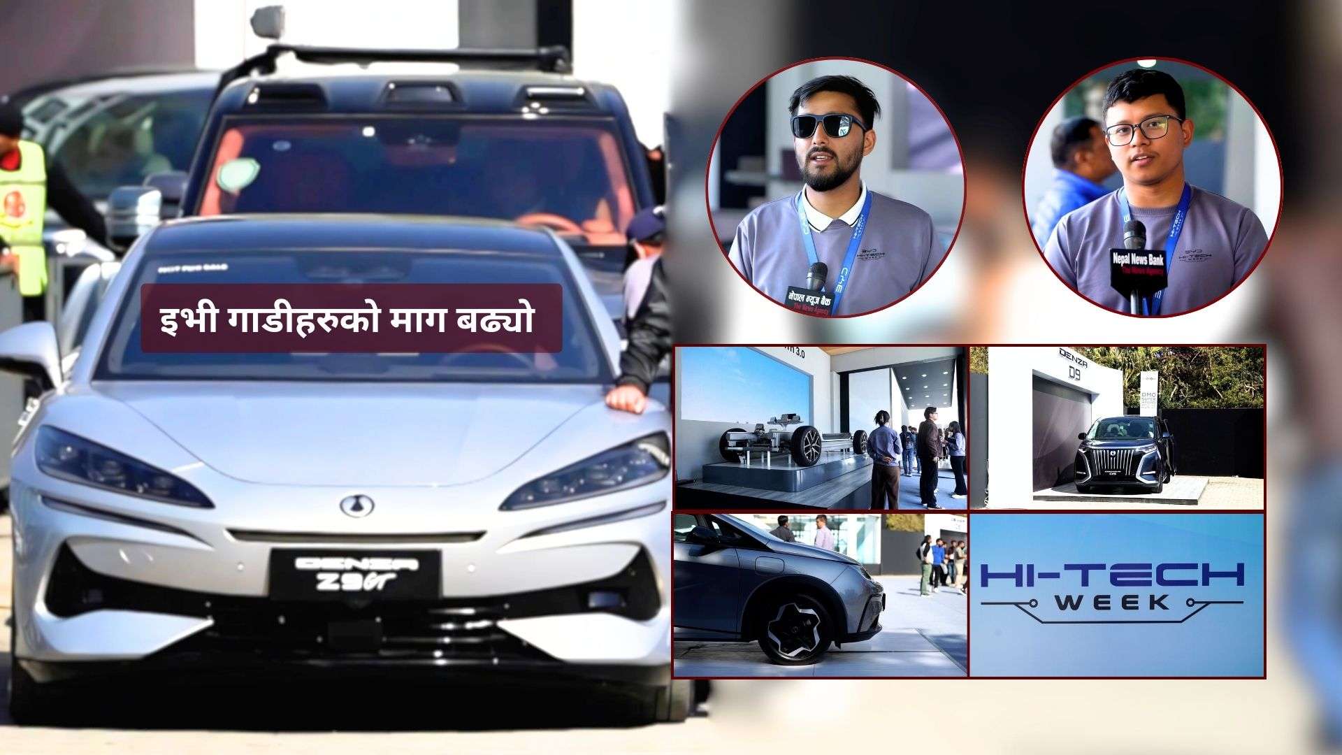 उनले हाइटेक वीकमा नेपालमा नभएको पाँच वटा गाडिहरु प्रदर्शन गरिएको जानकारी दिए । उनले भने,‘हाइटेक वीकमा नेपालमा नभएको पाँच वटा गाडीहरु छन् । एउटा बीवाइडीको अफरोड पीकअप ट्रक सार्क, फेङचेङ बाओको बाओ ५, बीवाइडीको प्रिमियम ब्राण्ड याङवाङको यू ८, डेञ्जाको एमपीभी डी ९ र जेड ९ जीटी प्रदर्शन गरिएको छ ।’