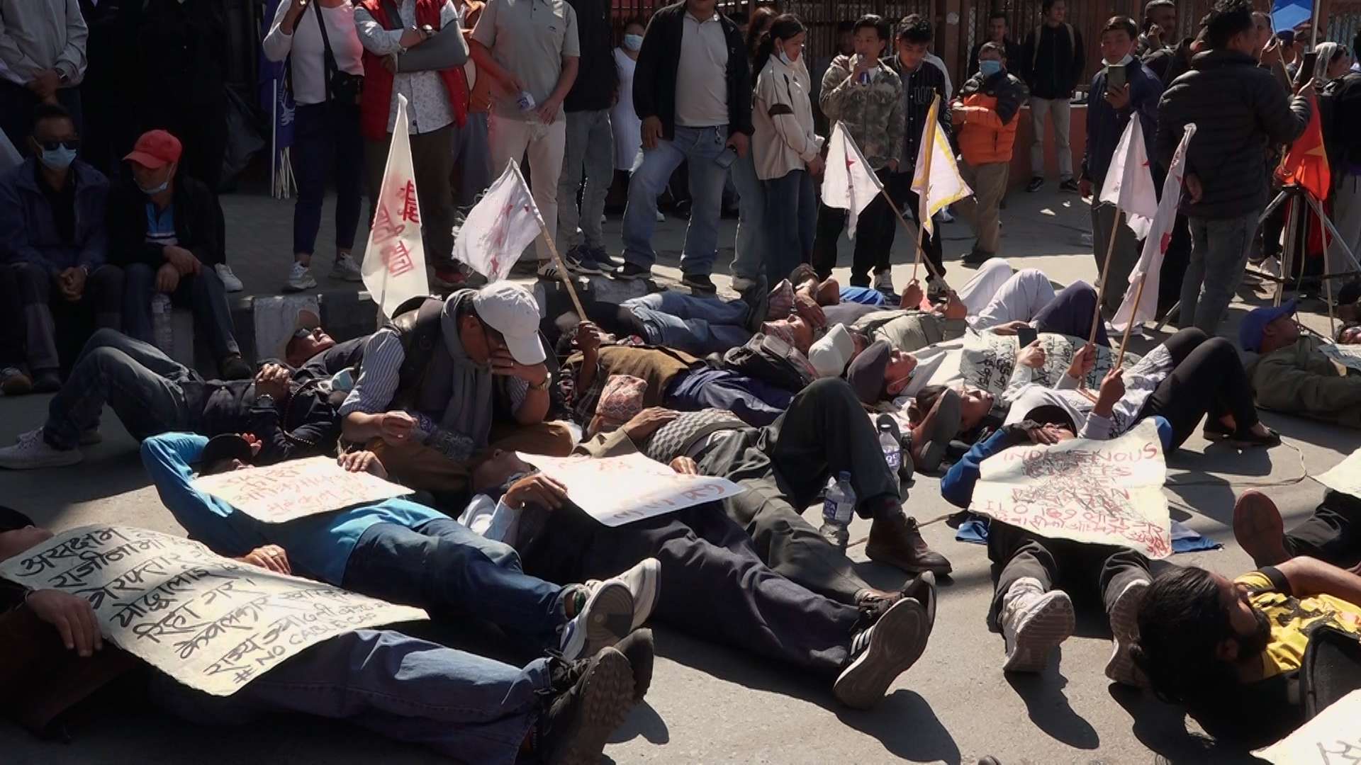 काठमाडौं । ‘नो केबलकार समूह’ ले ताप्लेजुङको पाथीभरा क्षेत्रमा केवलकार निर्माणको विरुद्धमा सडकमा सुतेर विरोध जनाइ रहेका छन् । बुधबार काठमाडौंमो माइतीघरको सडकमा सुतेर उनीहरुले विरोध जनाएका हुन् ।
