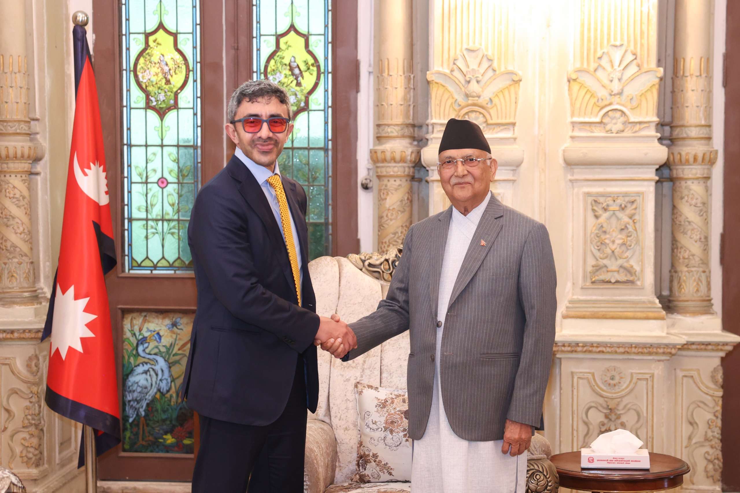काठमाडौँ । प्रधानमन्त्री केपी शर्मा ओली र संयुक्त अरब इमिरेट्स (युएइ) का उपप्रधानमन्त्री एवं विदेशमन्त्री शेख अब्दुल बिन जायेद अल नाह्यानबीच शिष्टाचार भेटवार्ता भएको छ । प्रधानमन्त्री तथा मन्त्रिपरिषद्को कार्यालय, सिंहदरबारमा भएको भेटमा दुुई देशबीचको आपसी मित्रवत सम्बन्धका विविध पक्षका साथै व्यापार र लगानीका विषयमा समेत छलफल भएको थियो ।