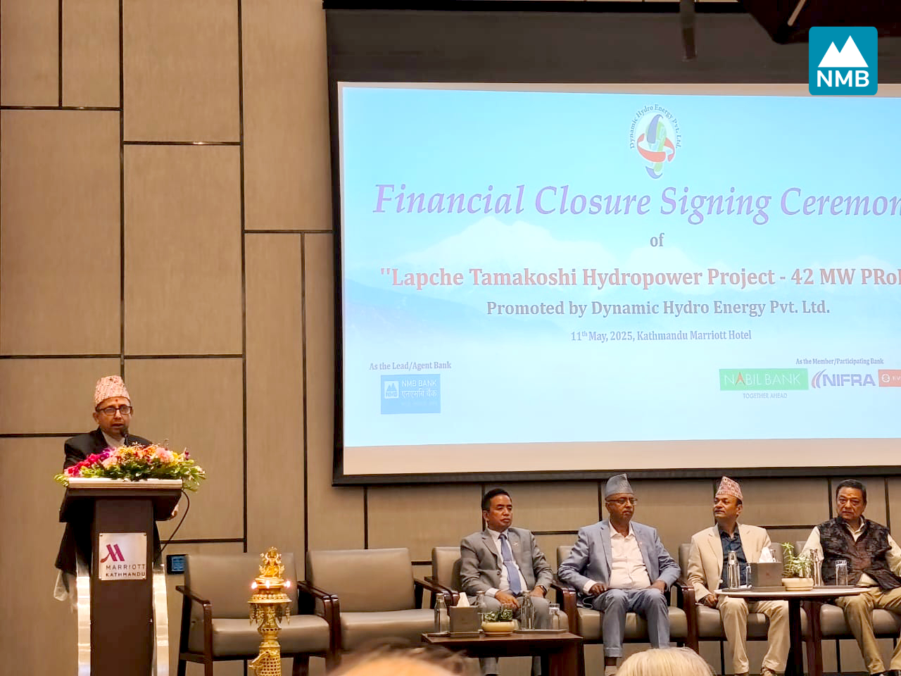 यता, अध्यक्ष श्री मोहन बिक्रम कार्कीले एनएमबि बैंकसँग ८ वटा जलविद्युत आयोजनाका लागि ऋण लिइसकेको उल्लेख गर्दै लाप्चे तामाकोशी तथा चेपे खोला आयोजनालाई तोकिएको समयसीमा र लागतभित्र सम्पन्न गर्ने दृढता व्यक्त गरे।