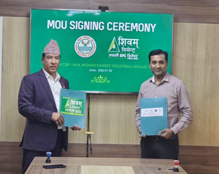 काठमाडाैं । नेपालको राष्ट्रिय खेल भलिबलको लोकप्रियता तीव्र रूपमा बढ्दै गइरहेको छ । पछिल्लो समय खेलप्रेमीहरूको बढ्दो रुचिलाई मध्यनजर गर्दै नेपाली भलिबललाई नयाँ उचाइमा पुर्याउने उद्देश्यसहित यहि जेठ ८ गतेदेखि १५ गतेसम्म नेपाल भलिबल संघद्वारा पोखरामा आयोजना हुन लागेको ९ औं साँझ कप – एनभीए महिला/पुरुष भलिबल लिग – २०८२ मा शिवम् सिमेन्ट लिमिटेड “स्ट्रेन्थ पार्टनर” को रूपमा सहकार्य गर्ने भएको छ ।