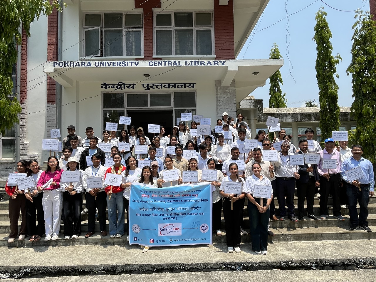 पोखरा । “सबैका लागि बीमा, सुरक्षित भविष्यका लागि आधार” भन्ने मूल नाराका साथ ५७ औं बीमा दिवस २०८२ को अवसरमा पोखरा विश्वविद्यालय स्कूल अफ बिजनेस अन्तर्गत बीमा, बैंकिङ तथा लगानी अध्ययन समूह (SGBI) ले जनचेतनामूलक कार्यक्रम सम्पन्न गरेको छ।