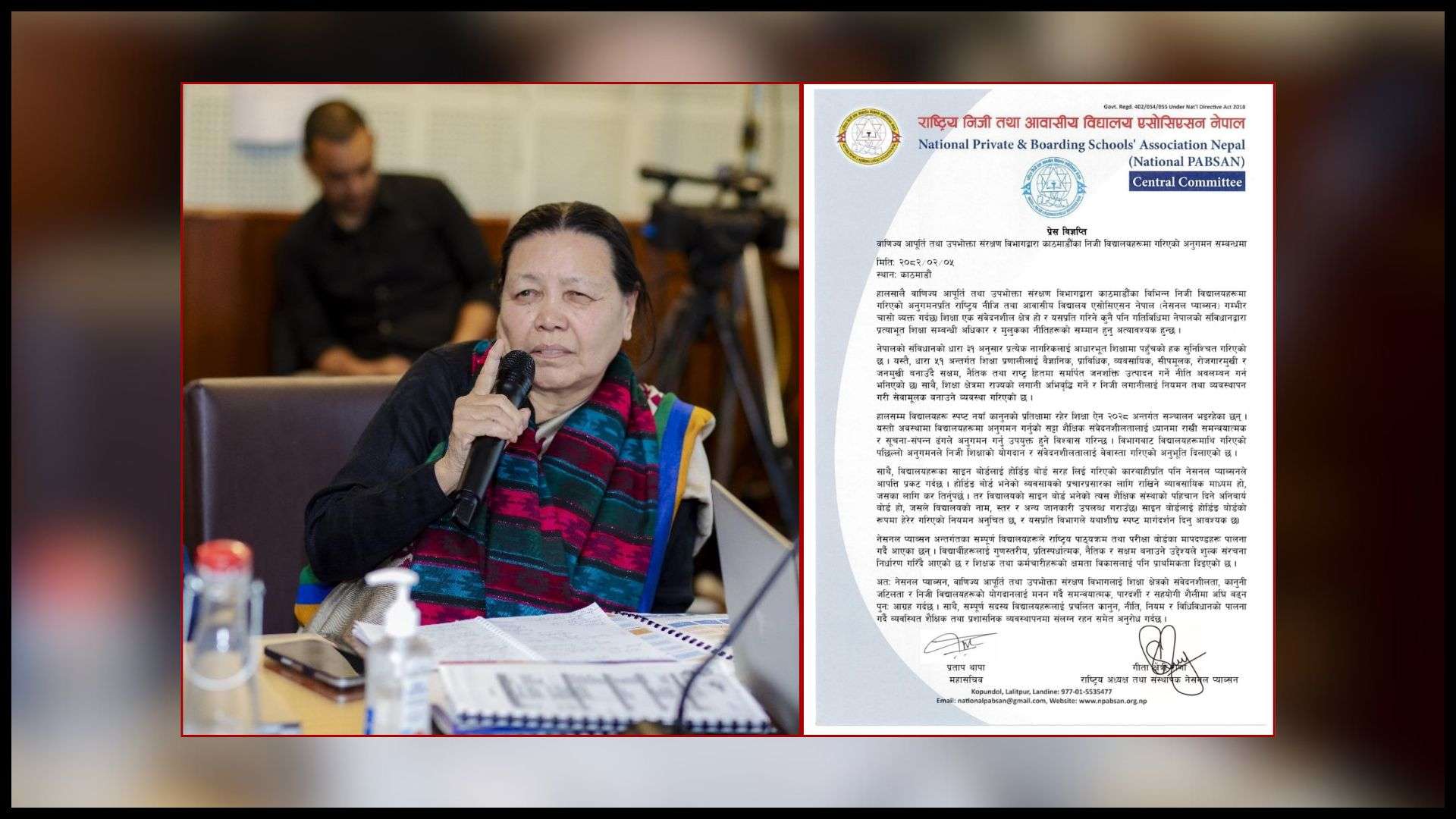 आज महासचिव प्रताप थापा र राष्ट्रिय अध्यक्ष तथा संस्थापक गीता क्षेत्री राणाको संयुक्त हस्ताक्षरमा जारी विज्ञप्तिमा शिक्षा क्षेत्र अत्यन्त संवेदनशील भएको उल्लेख गर्दै यसप्रति गरिने कुनै पनि गतिविधिमा नेपालको संविधानले प्रत्याभूत गरेका अधिकार तथा नीति९निर्देशनको सम्मान हुनुपर्नेमा जोड दिइएको छ।
