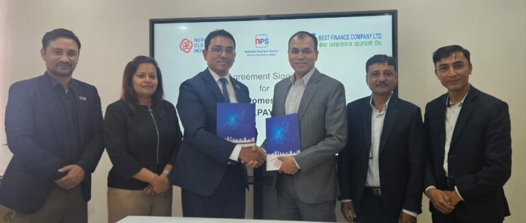 काठमाडौं । बेष्ट फाइनान्स र एनसीएचएल बीच एनपीएस– एनसीएस तथा डोमेस्टिक कार्ड योजना (नेपाल-पे) कार्ड को प्रिन्सिपल मेम्बरसिपका लागि सम्झौता भएको छ ।