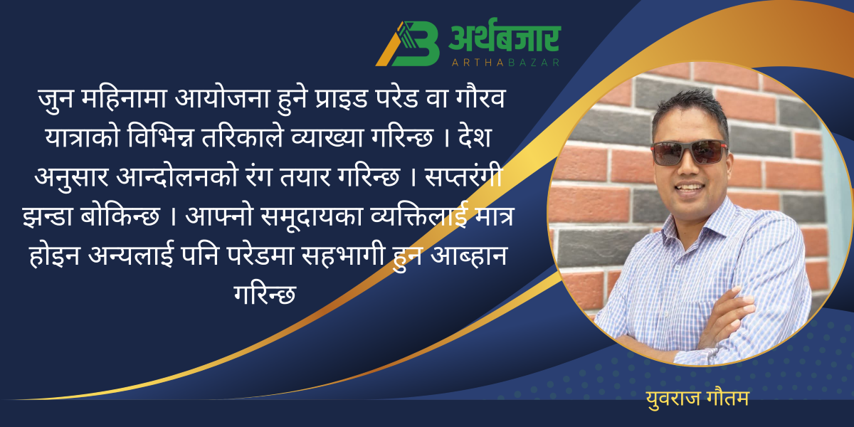 यौनिक तथा लैङ्गिक सिमान्तकृत(समलिङ्ग, तेस्रोलिङ्गी, अन्तरलिङ्गी र दुइलिङ्गी) अर्थात ‘एलजीविटीक्यूप्लस’लाई हिजोआज ‘क्वयेर’ भनिन्छ । नेपालमा यो समुदायका व्यक्तिहरु अढाइ दशक यता स्वतन्त्रता र समानताको आन्दोलनमा छन् । तर जुन महिनालाई उत्सवका रुपमा मनाउन थालिएको एक दशक पनि वितेको छैन् । यस बर्ष यो उत्सवले थप व्यापकता पाएको छ । सडकदेखि तारे होटलसम्म सप्तरंगी झन्डा फरफराएर फरक यौनिक पहिचान भएका व्यक्तिहरु स्वतःस्फूर्त रुपमा निस्किएका छन् ।