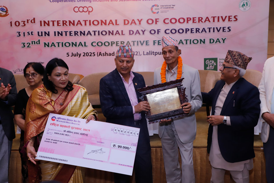 काठमाडौं । भूमि व्यवस्था, सहकारी तथा गरिबी निवारण मन्त्रालय र राष्ट्रिय सहकारी महासंघको संयुक्त आयोजनामा शनिबार अन्तर्राष्ट्रिय सहकारी दिवस मनाइएको छ। “सहकारीः सुन्दर विश्व निर्माणमा समावेशी र दिगो समाधानतर्फको यात्रा“ भन्ने नाराका साथ सम्पन्न कार्यक्रममा विभिन्न सहकारी संस्था र व्यक्तित्वहरूलाई सम्मान गरिएको हो।