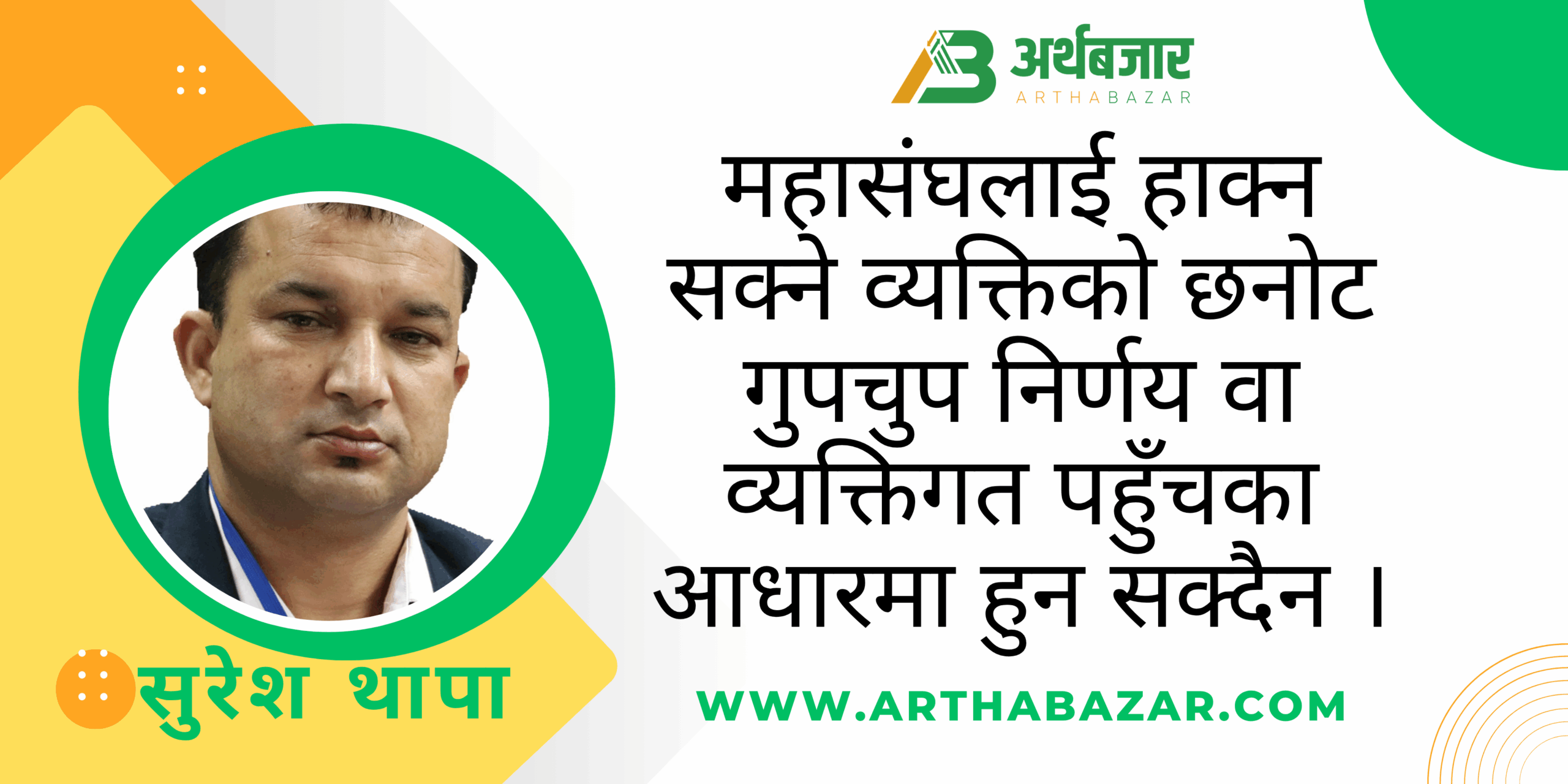 महाप्रवन्धक को र कस्तो भन्नेले खास अर्थ राख्दैन । जवसम्म संस्थाको प्रणालीगत सुधारले लय लिदैन तबसम्म यस्ता पदहरु गौंण हुन्छन् । त्यसकारण महासंघमा अवको महाप्रवन्धकले पहिलो कार्य यहि गर्नुपर्छ । कस्तो महाप्रवन्धक छनौट गर्ने भन्ने विषय महासंघको नीति, कार्यविधिमा स्पष्ट उल्लेख भएकै छ, सोहि आधारमा छनौट भइ नै हाल्ला । महासंघको संचालक समिति विवेकपूर्ण छ । यस विषयमा सोचेको छ भन्ने लाग्छ ।