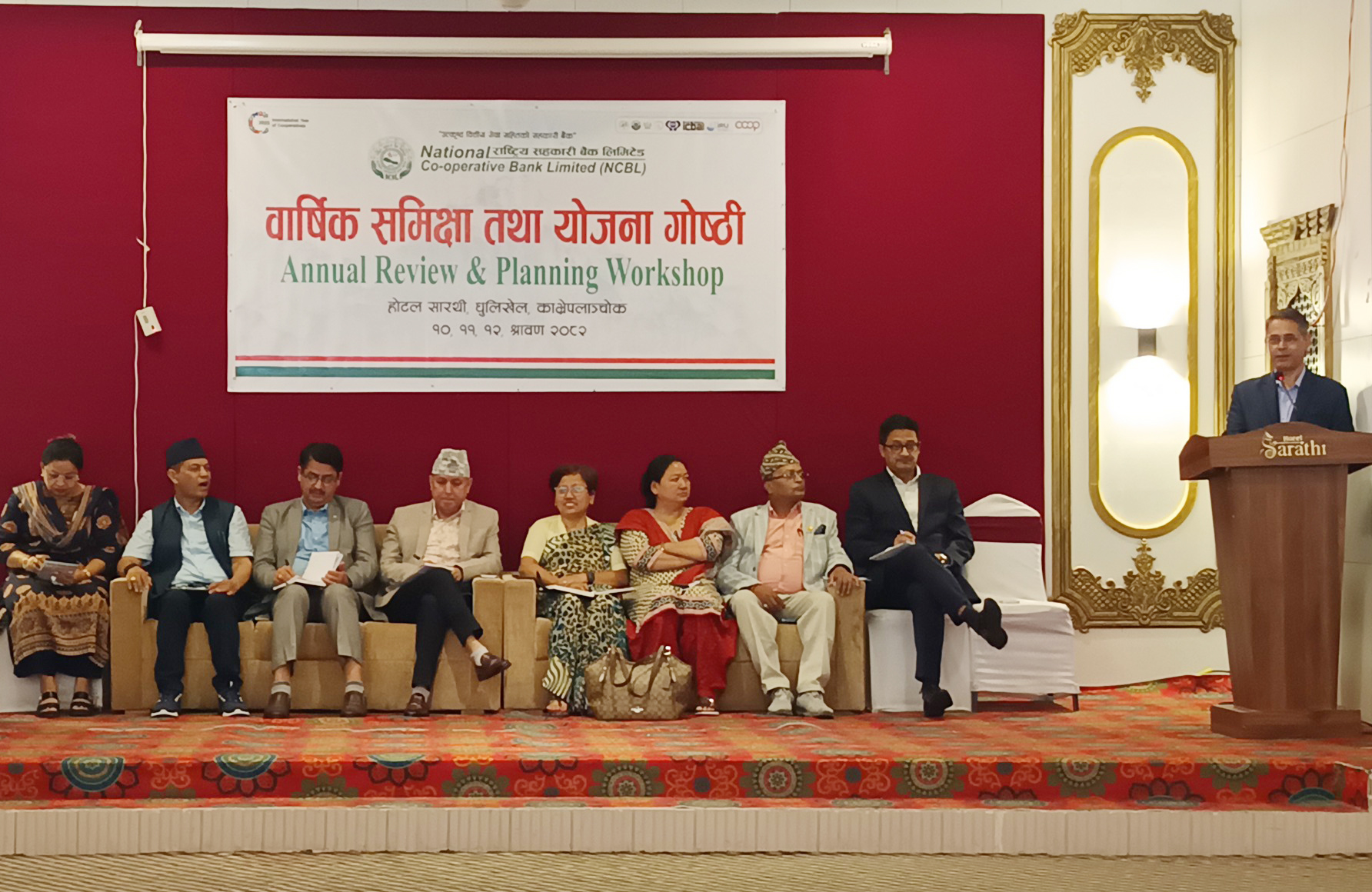काठमाडौं । राष्ट्रिय सहकारी बैंक लिमिटेडको वार्षिक समीक्षा तथा आगामी योजना सम्बन्धी गोष्ठी सोमबार सम्पन्न भएको छ। धुलिखेलस्थित एक होटलमा तीन दिनसम्म सञ्चालन भएको कार्यक्रममा बैंकले आर्थिक वर्ष २०८१/८२ को समग्र समीक्षा गर्दै चालू आर्थिक वर्षका योजनाहरूलाई अझ प्रभावकारी र उत्कृष्ट बनाउने प्रतिबद्धता व्यक्त गरेको छ।