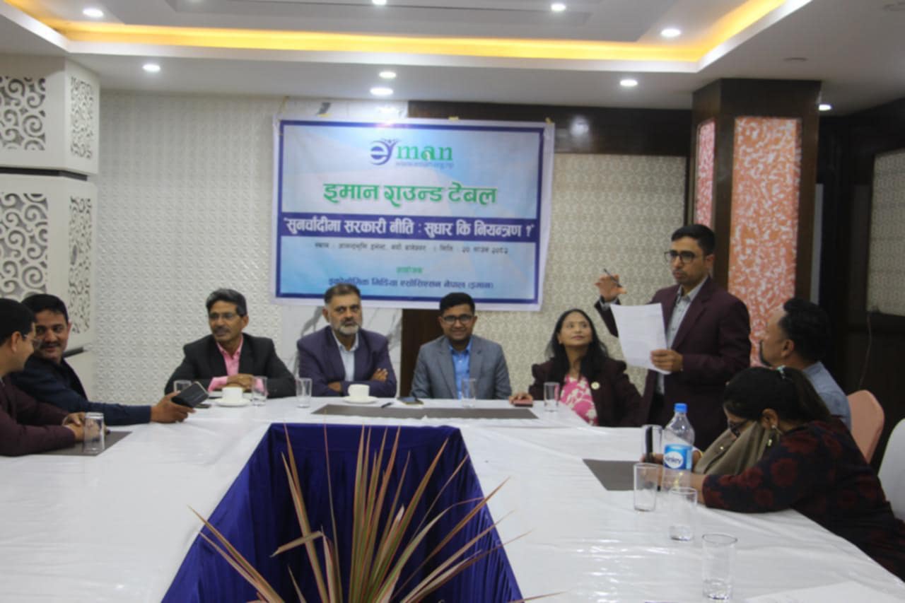 अर्थमन्त्री विष्णुप्रसाद पौडेलले केही दिनअघि राष्ट्रिय सभा बैठकमा सुनमा विलासिता कर र बहुमूल्य पत्थरमा भ्याट लगाउँदा देश ग्रे लिस्टबाट हट्ने बताएका थिए । विलासिता कर लगाउँदा खरिद–बिक्री पारदर्शी हुन्न र मुलुक ग्रे लिस्टबाट हट्ने उनको दाबी थियो । कार्यक्रममा वाणिज्य आपूर्ति तथा उपभोक्ता संरक्षण विभागका महानिर्देशक कुमारप्रसाद दहालले सुनका विषयमा सरकारले अलि फराकिलो भएर सोच्नुपर्ने बताए । विभागले सुनचाँदीको बजारको नियमन गर्न अहिले पनि कानुनी व्यवधान नरहेको स्पष्ट पारे । ‘२०७० सालदेखि कानुन बनाउन खोजिएको छ तर अहिलेसम्म पूर्णता पाएको छैन, यो अलि सोचनीय विषय हो,’ उनले भने ।