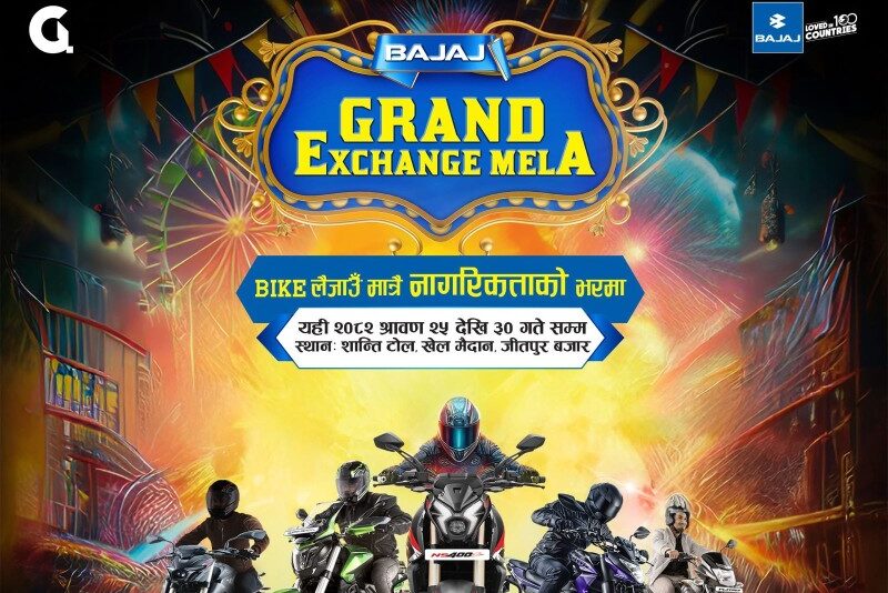 जीतपुर । बारा जिल्लाको जितपुरमा ‘बजाज ग्रान्ड एक्सचेन्ज मेला’ सुरु भएकाे छ । आजदेखि सुरु भएकाे मेला साउन ३० गतेसम्म चल्ने छ । बजारको शान्तिटोल खेल मैदानमा हुने मेलामा ग्राहकहरूले नागरिकताको आधारमा मात्र बजाजको बाइक फाइनान्स गर्न सक्नेछन् ।