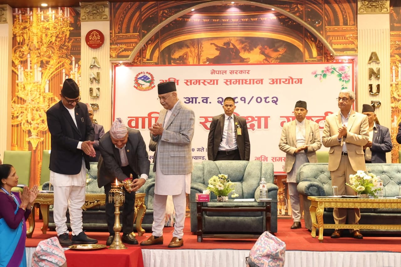 राजनीतिक चेपुवामा परेर धेरै पटक आयोग बन्ने, बिघटन हुने श्रृङ्खला चलिरहेकोमा बर्तमान सरकारले आयोगलाई स्पष्ट निर्देशन सहित बिघटन नहुने र सबै समस्या हल गर्ने गरी जिम्मेवारी प्रदान गरेको स्मरण गरे । २०८१ साल काक्तिक १३ गते गठन भएको यो आयोगले ८ महिनाको समयमा ७७ जिल्लामा शाखा खोल्ने, भूमिहिनको लगत संकलन गर्ने र लालपुर्जा बितरणको काममा समेत ध्यान दिएको बताए ।