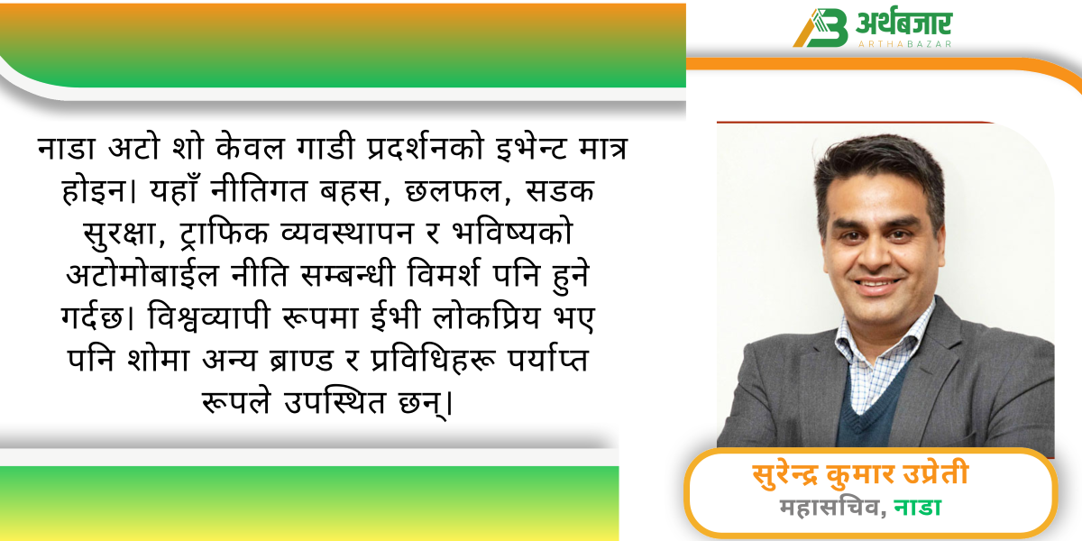नेपाल अटोमोबाइल व्यवसायीहरूको साझा संस्था नाडा अटोमोबाइल्स एशोसिएसन पनि उप्रेतीजस्ता व्यवसायीहरूको अधिकार संरक्षण, सहज वातावरण निर्माण र दीर्घकालीन उद्योग विकासमा निरन्तर सक्रिय रहँदै आएको छ। देशभरका साझेदार संस्थासँग सहकार्य गर्दै नाडाले अटोमोबाइल क्षेत्रमा औद्योगिक विकास, राजस्व अभिवृद्धि र रोजगारी सिर्जनामा महत्त्वपूर्ण योगदान पुर्याएको छ। यिनै विषयलाई केन्द्रबिन्दु बनाई नाडा अटोमोबाइल्स एशोसिएशन अफ नेपालका महासचिव सुरेन्द्र कुमार उप्रेतीसँग गरिएको कुराकानीको केही अंश यहाँ प्रस्तुत गरिएको छ।