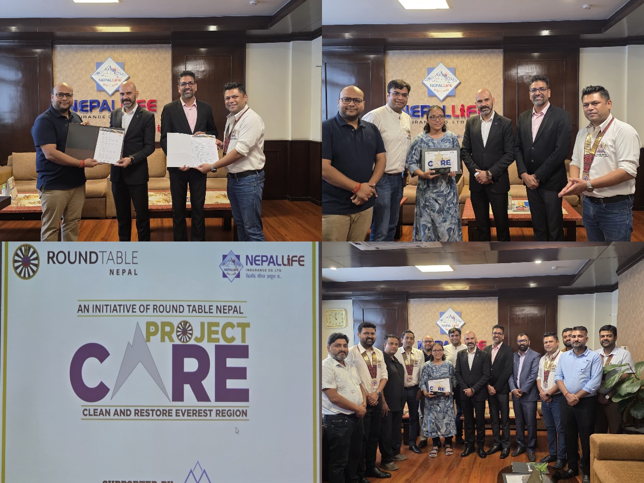 काठमाडौं । नेपाल लाइफ इन्स्योरेन्स कम्पनी लिमिटेडले राउन्ड टेबल नेपालसँगको सहकार्यमा प्रोजेक्ट केयर अभियान अन्तर्गत सगरमाथामा थुप्रिएका ५,००० किलोग्राम फोहोर सङ्कलन गरेको छ । नेपाल लाइफ इन्स्योरेन्सको केन्द्रीय कार्यालय कमलादीमा आयोजित एक विशेष समारोहका बीच राउन्ड टेबल नेपालका अध्यक्ष प्रवेश अग्रवालले फोहोर सङ्कलन सम्बन्धि प्रतिवेदन यस कम्पनीका प्रमुख कार्यकारी अधिकृत प्रवीण रमण पराजुलीलाई हस्तान्तरण गरेका थिए ।