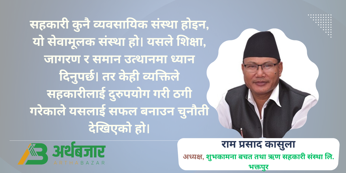 सहकारी कुनै व्यवसायिक संस्था होइन, यो सेवामूलक संस्था हो। यसले शिक्षा, जागरण र समान उत्थानमा ध्यान दिनुपर्छ। तर केही व्यक्तिले सहकारीलाई दुरुपयोग गरी ठगी गरेकाले यसलाई सफल बनाउन चुनौती देखिएको हो।