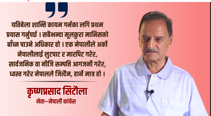 गत सोमबार र मंगलबार युवा पुस्ता (जेन–जी)को आन्दोलनका क्रममा ठूलो जनधनको क्षति भयो । सरकारी तथा नीजि संरचनाहरुमा आगजनी गरियो । विभिन्न राजनीतिक दलका नेताहरुको निजी घर र नेताहरु भौतिक आक्रमणमा परे । दर्जनौं नेताहरुको घरमा आगजनी र तोडफोड मात्र गरिएन विस्तापित नै हुन पुगे । अवस्था सामान्य हुँदैगएपनि कांग्रेस, एमाले, माओवादी केन्द्रका नेताहरु अझै सुरक्षाकर्मीको निगरानीमा छन् । सामाजिक संजालमार्फत बाहेक मिडियामार्फत सार्वजनिक रुपमा अभिव्यक्ति दिइरहेका छैनन् । काठमाडौंमा रहेका आफ्नो घरमा आगजनी भएपछि पूर्वमन्त्री एवम नेपाली कांग्रेसका नेता कृष्ण प्रसाद सिटौला अन्यन्त्रै बस्दै आइरहेका छन् । यसै सिलसिलामा नेपालको पछिल्लो घटनाक्रमबारे उनीसँग छोटो संवाद गरेको छ ।