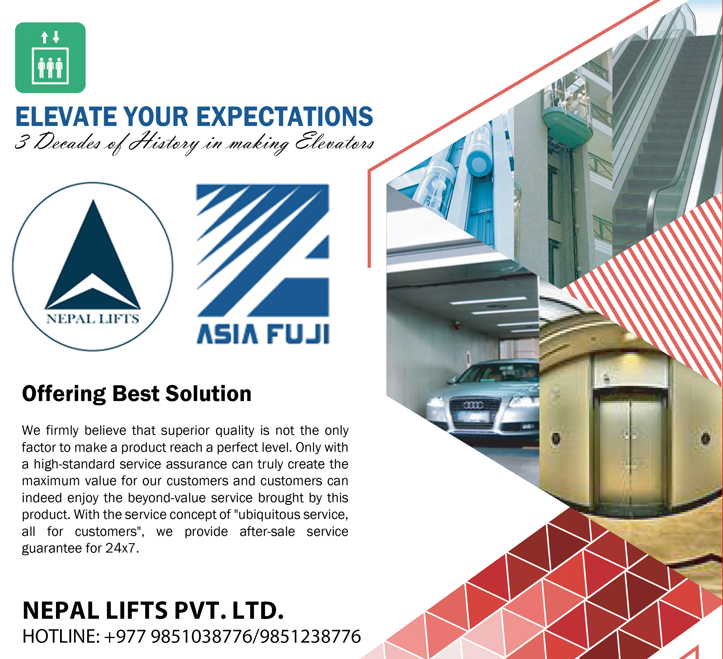 एशिया फुजी एलिभेटरको आधिकारीक विक्रेताको रुपमा नेपालमा एलिभेटर तथा एस्केलेटरको ब्यापार २ दशक यता गर्दै आएको नेपाल लिफ्ट्स ले एशिया फुजी सँगको सहकार्यमा यो अभियान अगाडि सारेको हो ।