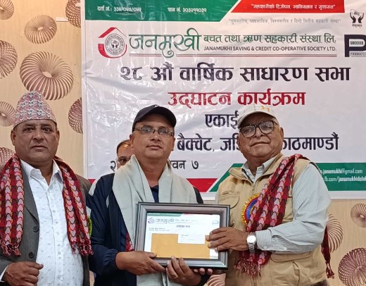काठमाडाैँ । नेपालपत्र न्युज डटकमका सम्पादक माधव खड्का जनमुखी बचत तथा ऋण सहकारी संस्थाद्वारा सम्मानित भएका छन्। दोलखा, बैतेश्वर–५ मैनापोखरीमा मुख्यालय रहेको संस्थाले आफ्नो २९ औं स्थापना दिवस र २८ औं साधारण सभाका अवसरमा उनलाई नगद, दोसल्ला र प्रशंसा पत्र प्रदान गर्दै सम्मान गरेको हो।