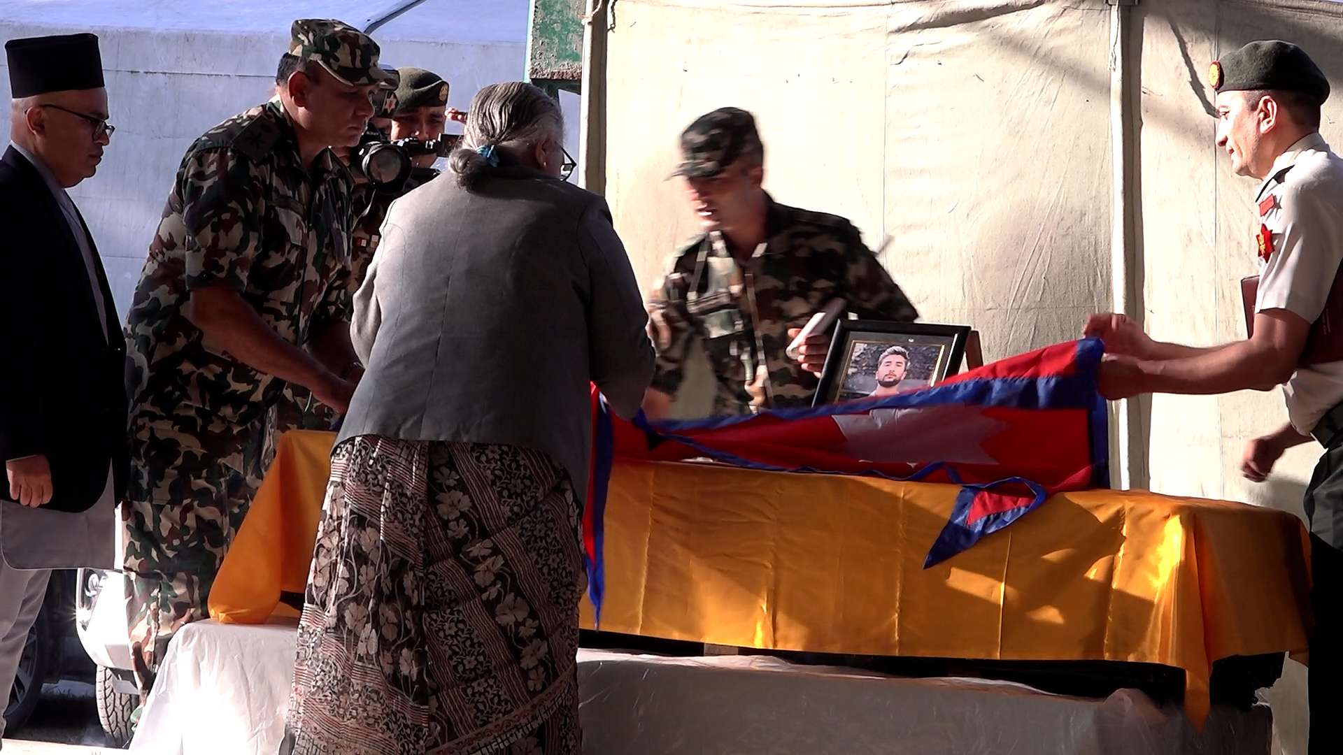 त्रिभुवन अन्तर्राष्ट्रिय विमानस्थलमा प्रधानमन्त्री सुशिला कार्की लगायत उच्च पदस्थ अधिकारीहरूले राष्ट्रिय झण्डाले ढाकिएको उनको शवमा भावपूर्ण श्रद्धाञ्जली अर्पण गरेका छन् ।