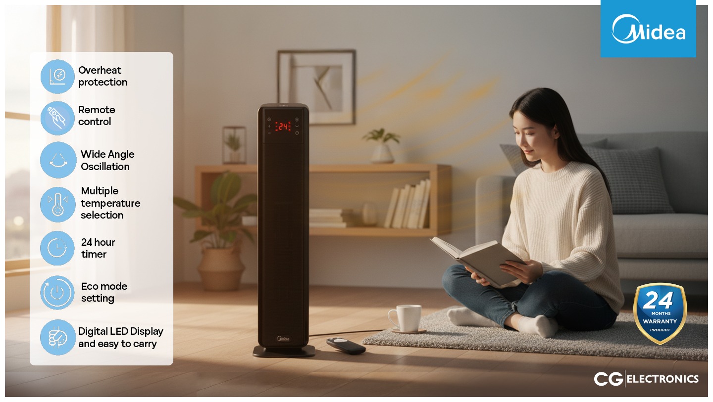 कम्पनीका अनुसार, नेपालभरका CG Digital शो–रुमहरू, CG Electronics डिलर नेटवर्क, तथा प्रमुख E-commerce प्लेटफर्महरू मार्फत माइडियाको नयाँ PTC Ceramic Heater (Model: NTH20-22FR) को बिक्री सुरु गरिएको छ।