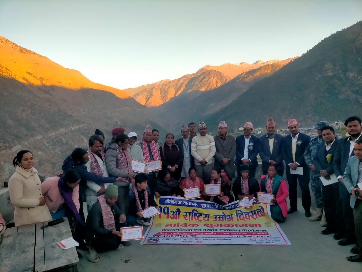 मुगु । ‘औद्योगिक वातावरण सुधार दीगो अर्थतन्त्रको आधार’ भन्ने मूल नाराका साथ मुगु जिल्लाको गमगढीमा आयोजित कार्यक्रममा ११ औँ राष्ट्रिय उद्योग दिवसका अवसरमा जिल्लाका १२ जना सफल उद्योगीलाई सम्मान गरिएको छ ।