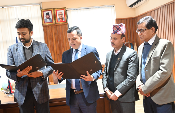 काठमाडौं । नेपाल बीमा प्राधिकरणका अध्यक्ष जनक राज शर्माले प्रोटेक्टिभ माइक्रो इन्स्योरेन्स लिमिटेडका संचालक समितिका नवनियुक्त अध्यक्ष दिनेश सरियालाई आज प्राधिकरणको केन्द्रीय कार्यालय, कुपण्डोलमा पद तथा गोपनीयताको शपथ गराएका छन् ।