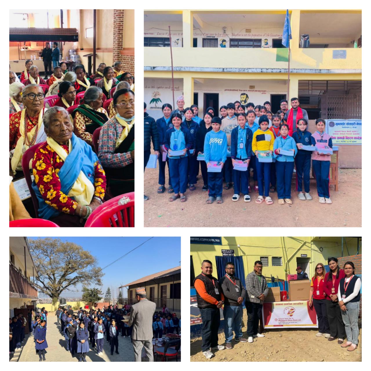 साथै, बालकुमारी आधारभुत विद्यालय, सैंबु, ललितपुरमा अध्ययतरत १८० जना विद्यार्थीहरुलाई जाडोबाट बच्नको लागि १८० थान न्यानो कपडा वितरण गरेको छ । त्यसैगरी, गोरखा जिल्लाको विभिन्न विद्यालयहरुमा अध्ययनरत विद्यार्थीहरुलाई मुनलाईट सोसाइटी नेपाल, गोरखाको सहकार्यमा विभिन्न शैक्षिक सामाग्रीहरु वितरण गरिएको छ ।