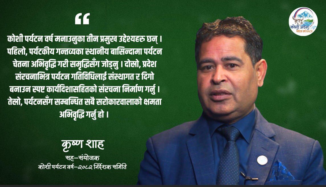 यसै सन्दर्भमा रहेर नेपाल न्यूज बैंकले कोशी पर्यटन वर्ष २०८२ निर्देशक समितिका सहसंयोजक कृष्ण शाहसँग गरेको कुराकानीमा उनले पर्यटकीय स्थलको प्रवद्र्धन र पर्यटन वर्षको प्रचारमा केन्द्रीत रहेको बताए ।