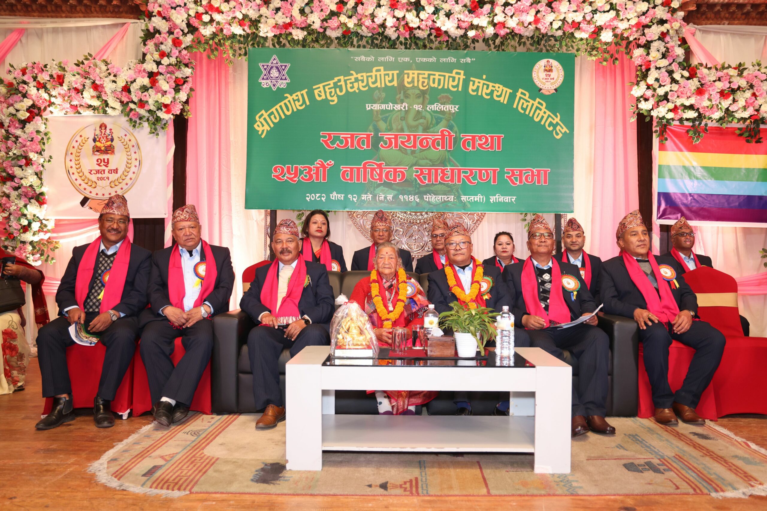 ललितपुर । श्री गणेश बहुउद्देश्यीय सहकारी संस्था लिमिटेडको २५औं वार्षिक साधारण सभा तथा रजत वर्ष जयन्ती शनिबार ललितपुरको शंखमूलस्थित यल दरबार भेन्यूमा भव्य रूपमा सम्पन्न भएको छ।