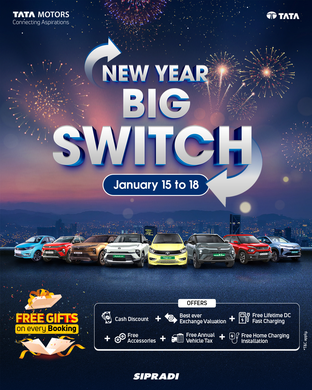 यस ‘बिग स्विच’ अभियानको मुख्य उद्देश्य ग्राहकलाई आफ्नो पुरानो गाडीको ‘उत्कृष्ट एक्सचेन्ज मूल्याङ्कन’ उपलब्ध गराउँदै नयाँ सवारीको अनुभव दिलाउनु रहेको छ। योजना अवधिभर टाटाका गाडी बुकिङ गर्ने प्रत्येक ग्राहकले आकर्षक उपहारहरू प्राप्त गर्नेछन् भने आकरशक नगद छुटको सुविधा समेत उपलब्ध गराइएको छ।