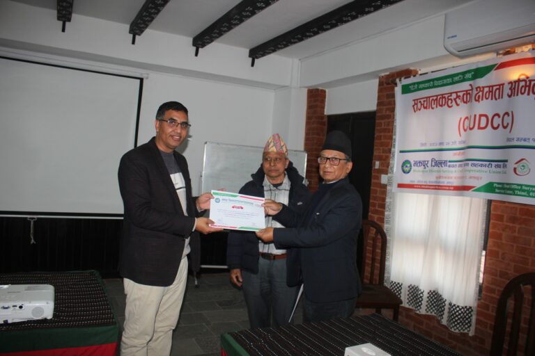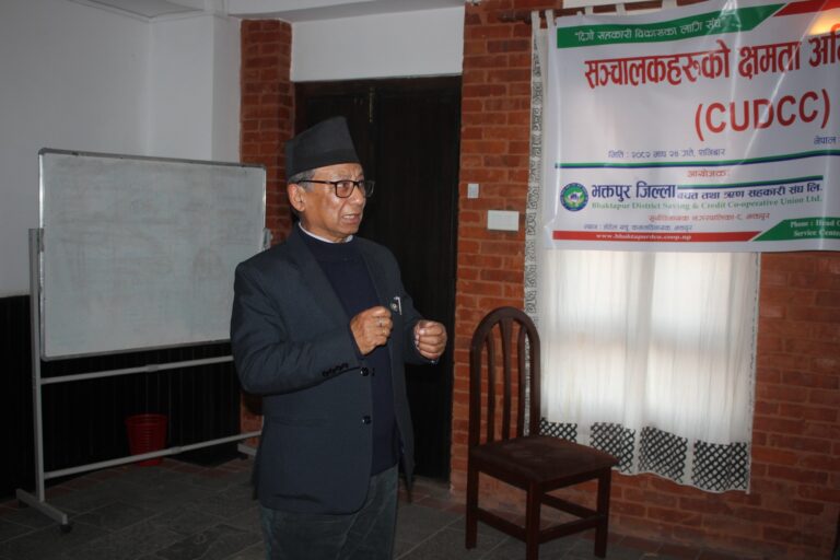 भक्तपुर। भक्तपुर जिल्ला बचत तथा ऋण सहकारी संघ लि. संघको आयोजना र बागमती प्रदेश बचत तथा ऋण सहकारी संघ लि.को प्राविधिक सहयोगमा एक दिने संचालकको क्षमता अभिबृद्धि तालिम होटेल यचु, कमलविनायकमा सम्पन्न भएको छ ।