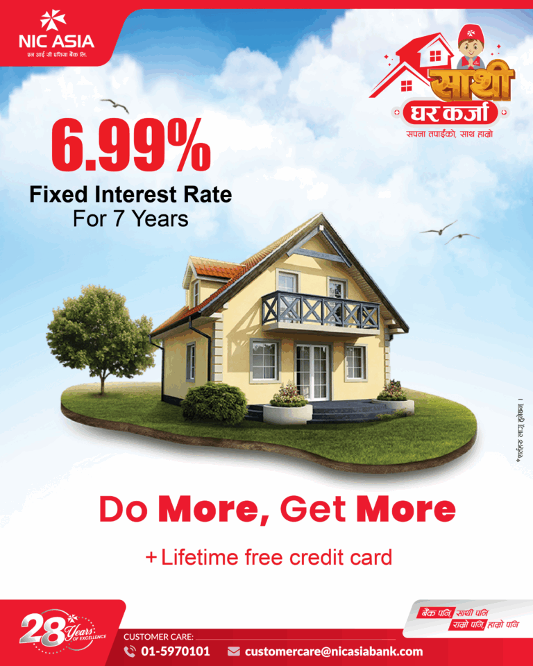 काठमाडौं । एनआईसी एशिया बैंकले ग्राहक महानुभावहरूको आवश्यकतालाई हरसम्भव पूरा गर्नका लागि रू. १० करोडसम्म घर कर्जा प्रदान गर्ने उद्देश्यअनुरुप ‘एन आई सी एशिया साथी घर कर्जा’ योजना सार्वजनिक गरेको छ ।