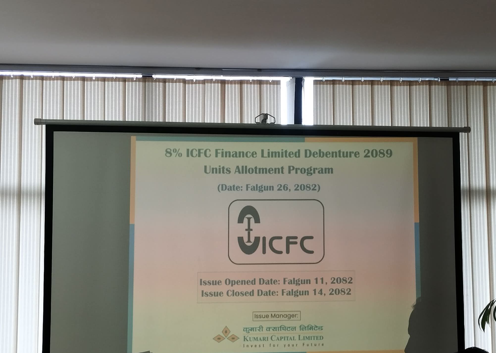 काठमाडौं । आईसिएफसी फाइनान्स लिमिटेडले माघ ९ गतेदेखि १३ गतेसम्म निष्काशन गरेको “९ प्रतिशत आईसिएफसी फाइनान्स डिबेञ्चर–२०८९” को बाँडफाँड आज सम्पन्न भएको छ। उक्त ऋणपत्रको बिक्री प्रबन्धक कुमारी क्यापिटल लिमिटेडले बाँडफाँड गरेको हो।