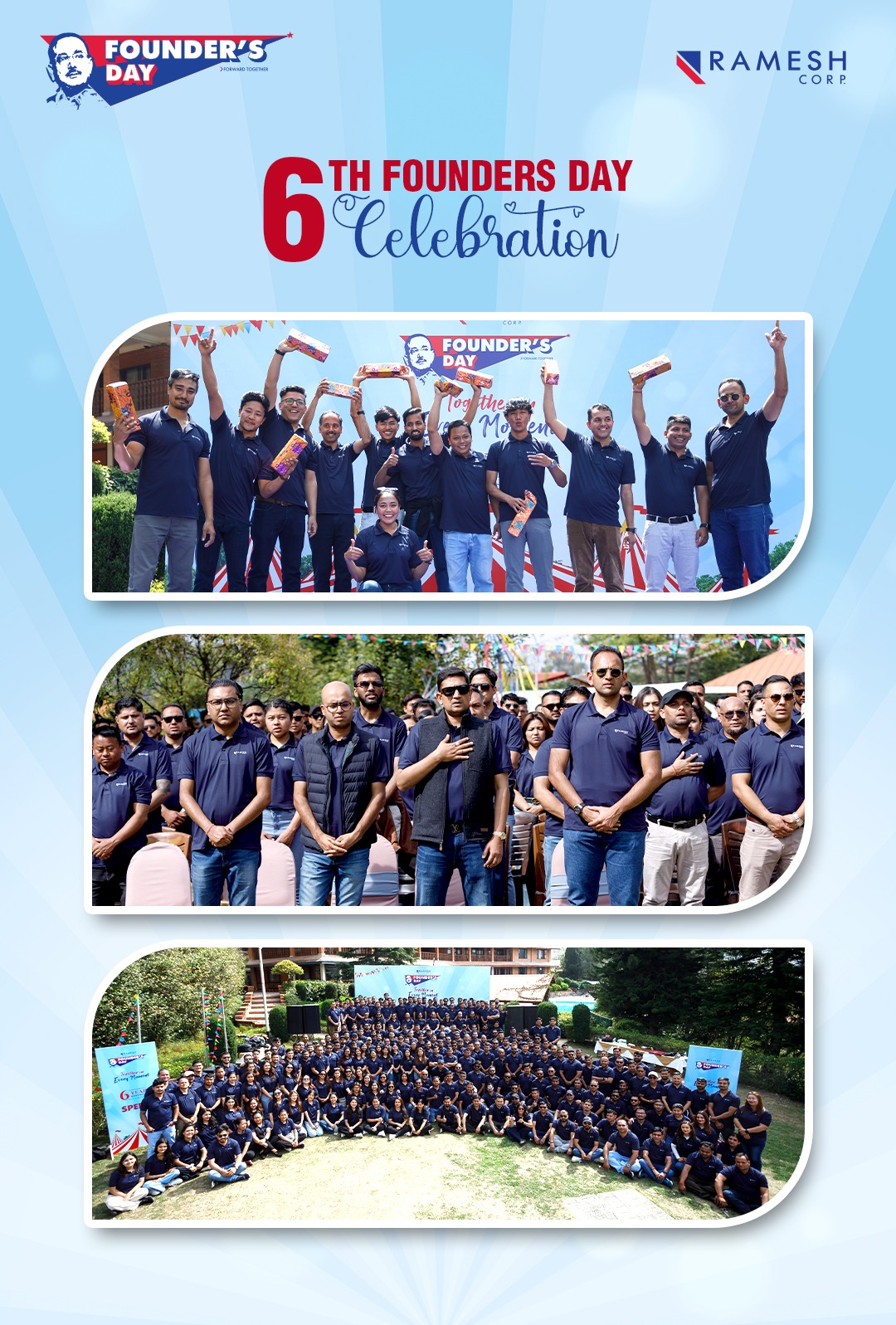 रमेश कर्पमा संस्थापक दिवस वार्षिक रूपमा चैत्र ६ मा मनाइन्छ, जसले स्वर्गीय अध्यक्ष इमेरिटस श्री रमेश गुप्ताको जन्मजयन्तीको सम्झना गर्दछ । संस्थापकको दूरदर्शी नेतृत्व र मूल्य—इमानदारी, अग्रणी सोच, गतिशीलता, वास्तविकता र व्यावसायिकता ले कम्पनीको आधार तयार पारेको थियो । यस दिनले ती मूल्यहरूलाई पुनः पुष्टि गर्दै संस्थापकको योगदानको सम्मान गरेको छ ।