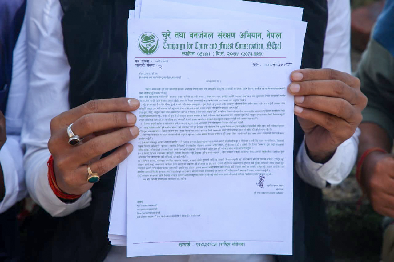 काठमाडाै । चुरे तथा वन जंगल संरक्षण अभियान नेपालले माइतीघर मण्डलामा प्रदर्शन गरेको छ । वन–जंगल संरक्षण तथा सम्बर्द्धन, दलित भूमिहीन सुकुम्बासीहरूको भूमि अधिकार सुनिश्चित गर्न, अवैध उत्खनन रोक्न, सिर्सिया नदीको प्रदूषण र अतिक्रमण नियन्त्रण गर्न, साथै ढुङ्गा, गिट्टी, बालुवाको अवैध उत्खनन बन्द गरी अवैध क्रसर उद्योगहरू बन्द गरिनुपर्ने लगायतका माग राख्दै माइतीघर मण्डलामा प्रदर्शन गरेका हुन् ।