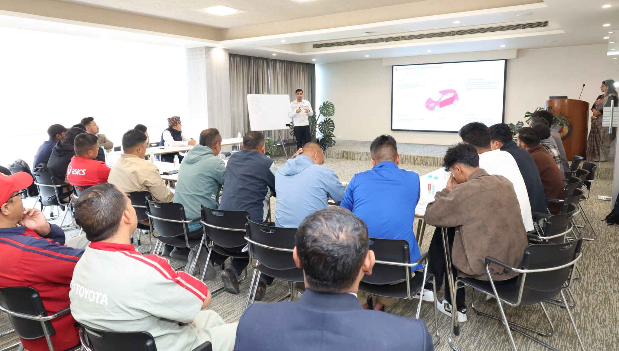 तालिममा हाइब्रिड सवारीसाधनसम्बन्धी प्रशिक्षण टोयोटाका प्राविधिक विज्ञहरूले दिएका थिए भने विद्युतिय सवारीसाधनसम्बन्धी तालिम लक्ष्मी हुन्डाईका विशेषज्ञहरूले सञ्चालन गरेका थिए। यसबाट सहभागीहरूले दुवै प्रविधिबारे आधारभूत र प्रयोगात्मक ज्ञान प्राप्त गरेका छन्।