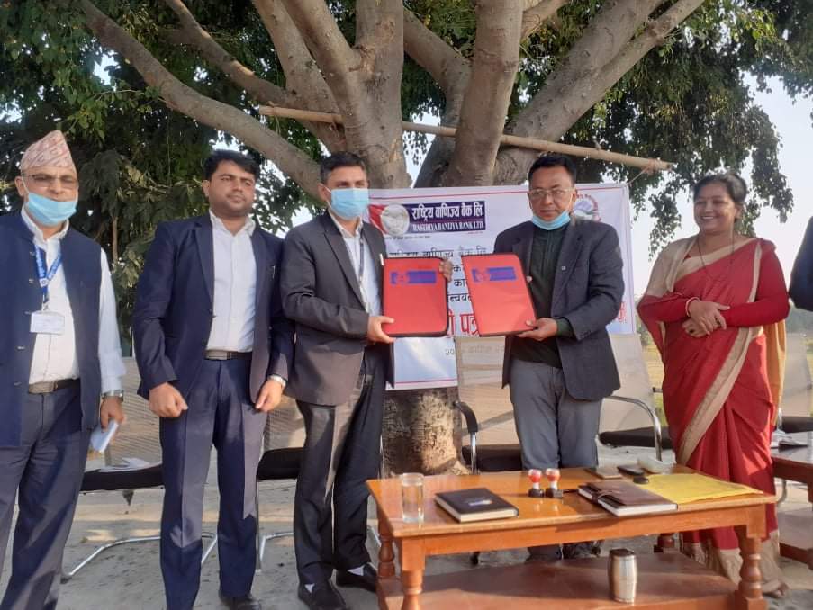 काठमाडौ । राष्ट्रिय वाणिज्य बैंक लिमिटेड र खजुरा गाँउपालिका (बाँके जिल्ला) बीच सहुलियतपूर्ण कर्जामा सहकार्य गर्ने सम्बन्धमा मंगलबार खजुरामा सम्झौता भएको छ । सम्झौतापत्रमा बैंकका लुम्बिनी प्रादेशिक प्रबन्धक आनन्द सुवेदी र खजुरा गाँउपालिकाका अध्यक्ष किस्मतकुमार कक्षपतिले हस्ताक्षर गरे ।