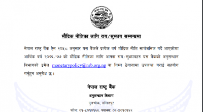 राष्ट्र बैंकले माग्यो माैद्रिक नितिका लागि सुझाव, यसरी दिनुस् सुझाव