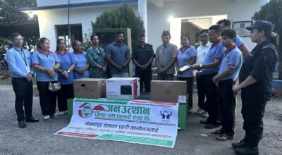 क्षतिग्रस्त प्रहरी कार्यालयलाई जनउत्थान साकोसको जिन्सी सहयोग
