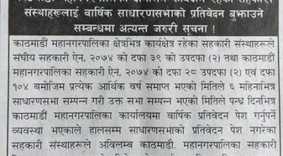सहकारीलाई बार्षिक विवरण बुझाउन विभागको ताकेता