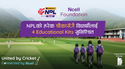 एनसेल फाउन्डेसनले एनपीएल सिजन २ का हरेक चौका वापत ४ ओटा शैक्षिक सामग्री वितरण गर्ने