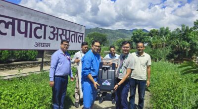 सांग्रिला डेभलपमेन्ट बैंकद्वारा बयालपाटा अस्पताललाई अक्सिजन कन्सन्ट्रेटर हस्तान्तरण