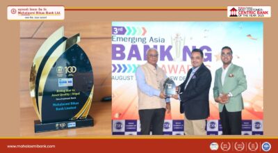 महालक्ष्मी विकास बैंक इन्डियन चेम्बर अफ कमर्सको प्रतिष्ठित अवार्डबाट सम्मानित