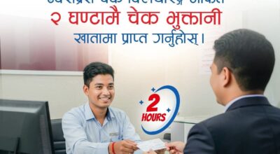 २ घण्टाभित्र चेक भुक्तानी प्राप्त हुने एनसिएचएलको द्रुत क्लियरिङ सेवा