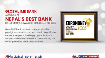 ग्लोबल आइएमई बैंकले तेश्रोपटक पायो ‘युरो मनी अवार्ड फर एक्सलेन्स २०२५’को बेस्ट बैंक अवार्ड