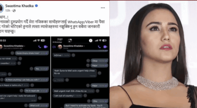 स्वस्तिमा खड्काको नाममा ठगी, सबैलाई सतर्क रहन अनुरोध