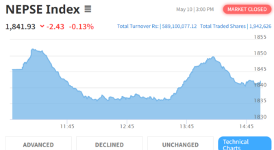 सेयर बजारमा सामान्य गिरावट, कारोबार रकम ५८ करोडमा खुम्चियो